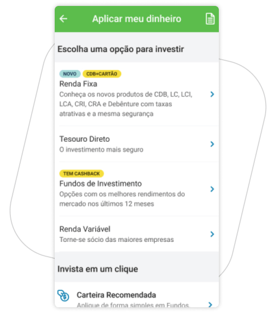 Agora você tem mais opções para investir em Renda fixa pelo PagBank, são CDBs, LCIs e LCAs de diferentes bancos. Diversifique suas aplicações e faça seu dinheiro render, tudo pelo celular e com poucos cliques.
